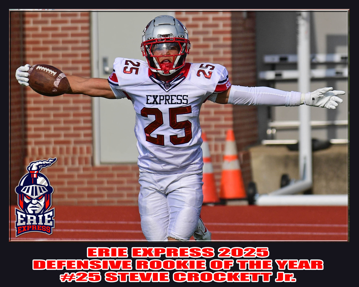 The Erie Express are pleased to announce the return of ATH-Stevie Crockett Jr. (Gannon University) for the 2026 season. Stevie begins his second season with the Express and returns as one of our starters in the defensive secondary and on special teams.
