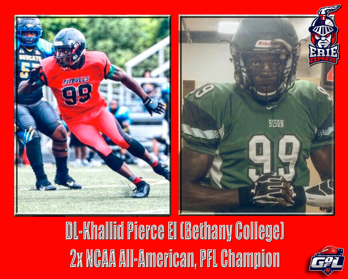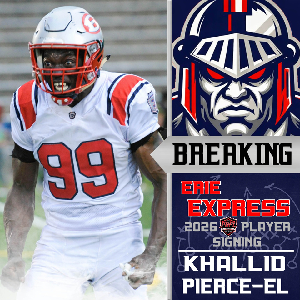 The Erie Express are pleased to announce the signing of 2x All-American DL-Khallid Pierce El (Bethany College) for the 2026 season. Khallid begins his third season with the Express and is a projected starter in the defensive rotation.