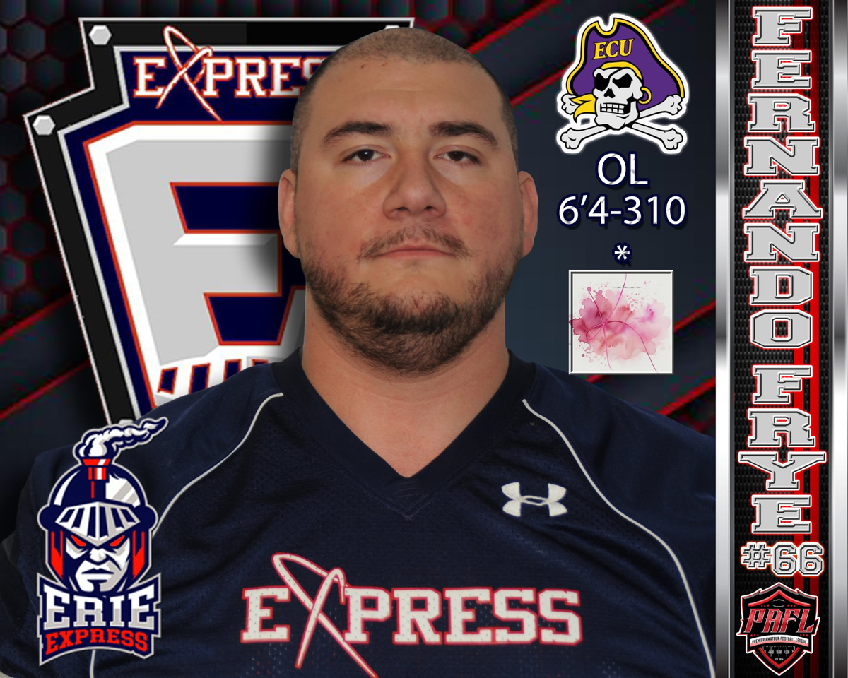 The Erie Express are pleased to announce the addition of OL-Fernando Frye (East Carolina University) for the 2026 season. Fernando begins his first season with the Express and is a projected starter on the offensive line.