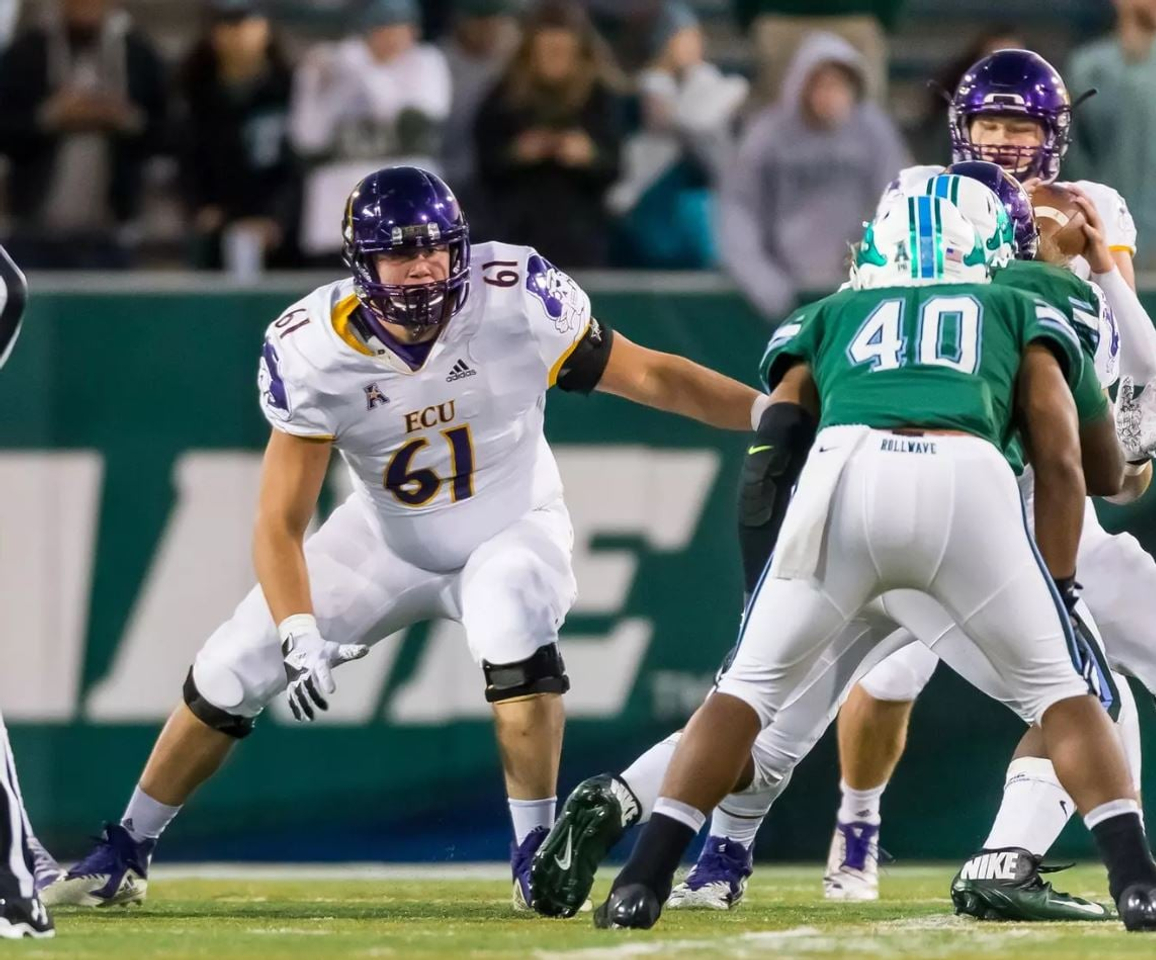 Frye started his college career with Mercyhurst University spending two years with the program before transferring to East Carolina as a walk on. Frye worked his way into the starting lineup in 2018 season. Frye would spend the next three seasons starting for the Pirates at center and guard. Fernando helped ECU’s offense reach over 500 yards on 4 separate occasions.