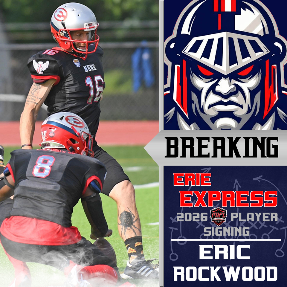 The Erie Express are happy to announce the return of K/P-Eric Rockwood (Alfred University) for the 2026 season. Eric begins his sixth season with the Express and returns as one of our starting kickers. Eric has played a major role in our teams success over the past five seasons.