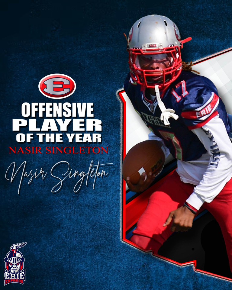 The Erie Express are pleased to announce the return of 2X All-Pro ATH-Nasir Singleton (Walsh University) for the 2026 season. Nasir begins his fifth season with the Express and and is a returning starter in the offensive WR rotation and on special teams.