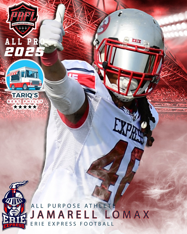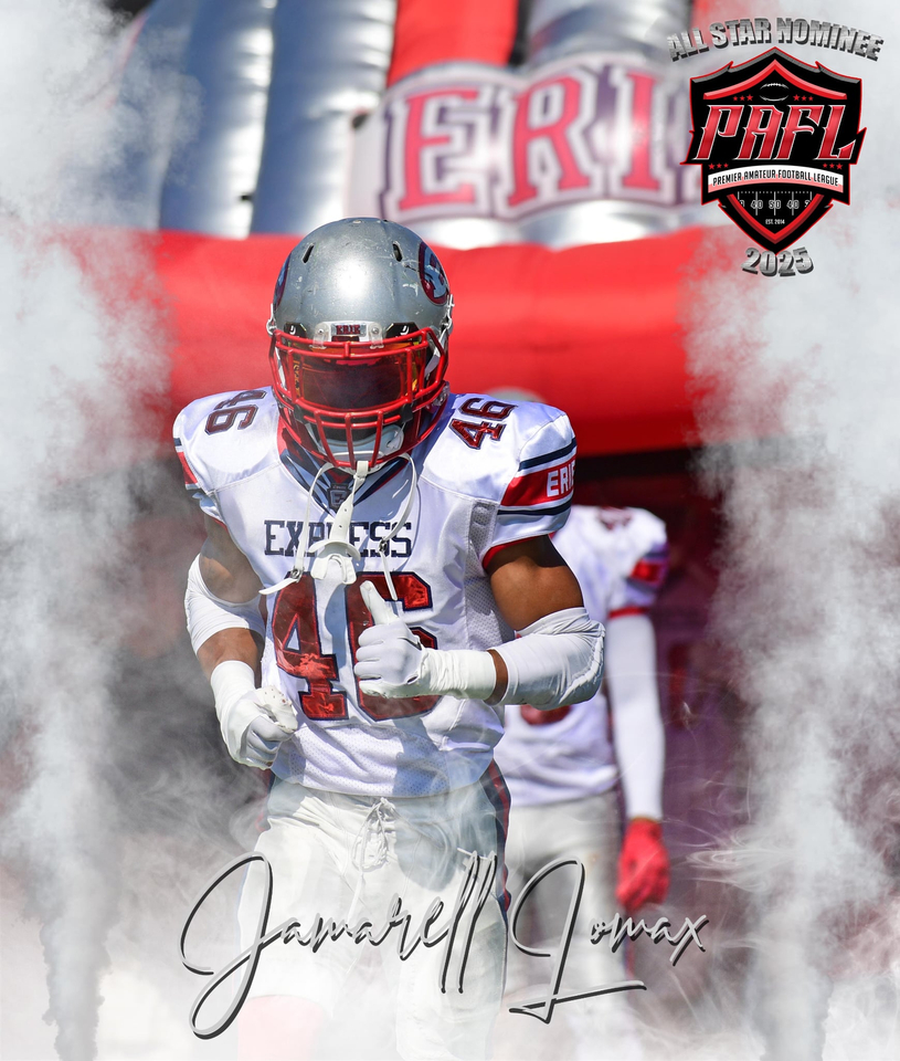 Jamarell was named PAFL All-Pro for the 2025 season. This is the fifth time Jamarell has earned All-Pro status in his career. Lomax was nominated to, and played in, the PAFL All-Star game at Kent State University.