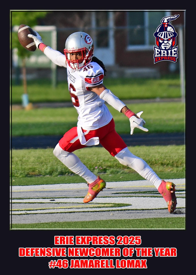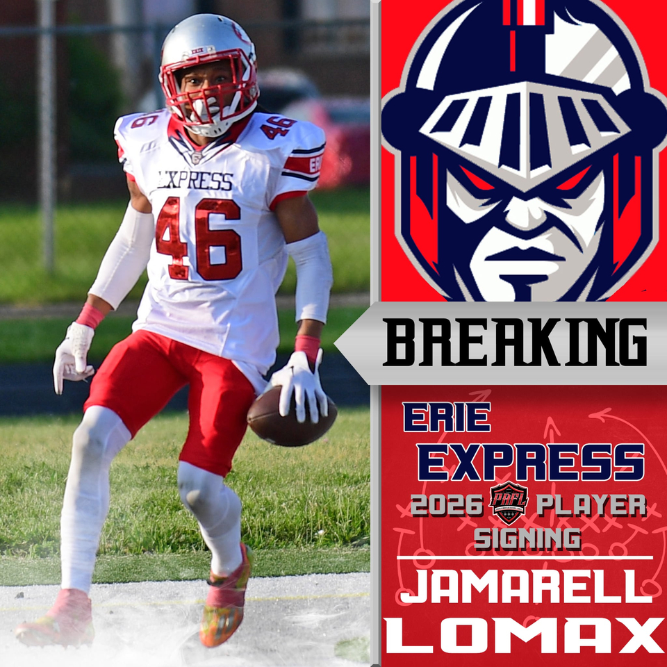 The Erie Express are pleased to announce the return of 5x All-Pro ATH-Jamarell Lomax (Denby, HS-MI) for the 2026 season. Lomax begins his second season with the Express and returns as one of our starters in the defensive rotation.