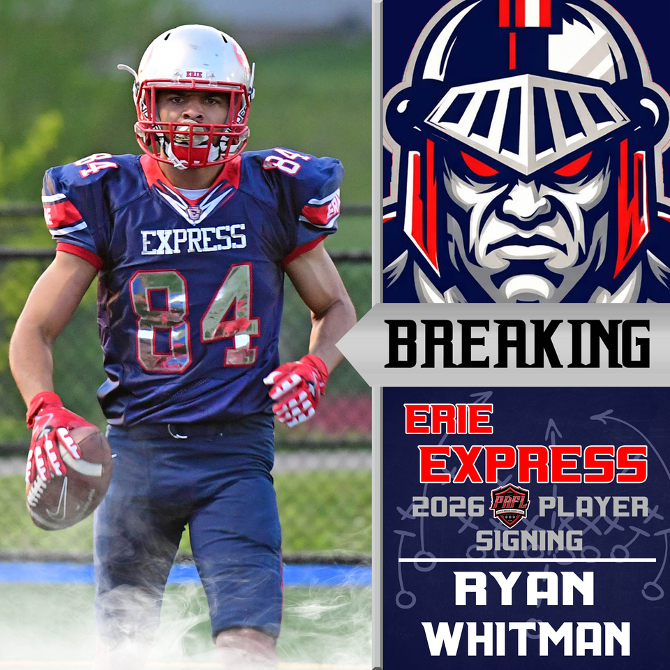 The Erie Express are pleased to announce the return of 2x All-Pro WR-Ryan Whitman (Saint Vincent College) for the 2026 season. Whitman begins his fourth year with the Express and returns as one of our wide receivers in the starting rotation and a starter on Special Teams as well.